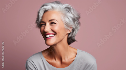 Portrait of elderly woman, healthy and good in shape, smiling and happy