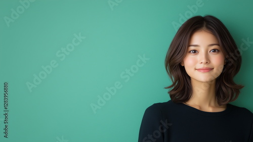 Portrait of European woman with a warm smile, and natural makeup, against a plane background. The minimal composition creates a fresh, modern, and professional aesthetic, perfect for business.