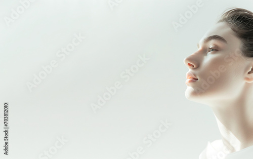 portrait of French woman, Beauty Clinic, skincare, white background. Generative Ai.