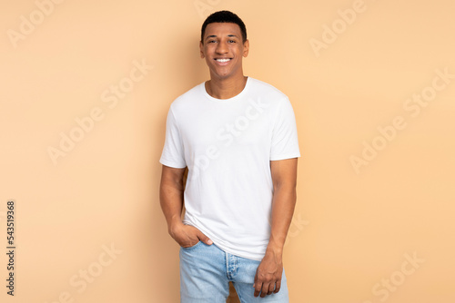 Portrait of handsome man wearing casual style shirt posing with positive facial expression