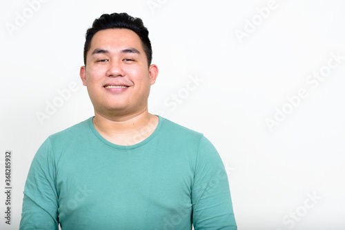 Portrait of happy young handsome overweight Asian man
