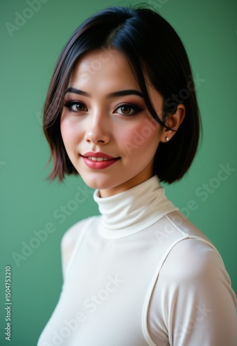 Portrait of her she nice attractive lovely charming content cute cheerful cheery girl enjoying isolation over a bright vivid shine vibrant green turquoise color background