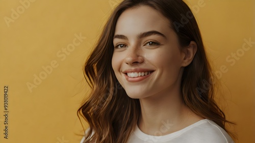 Portrait of her she nice well-dressed attractive lovely luxury pretty content cheerful cheery wavy-haired girl folded arms isolated over bright vivid shine vibrant yellow color background