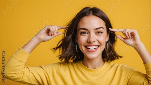 Portrait of her she nice-looking cool attractive lovely lovable winsome sweet crazy cheerful cheery girl having fun great breakthrough isolated on bright vivid shine yellow background