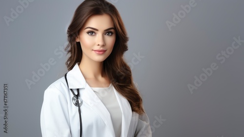 Portrait of positive young beautiful woman doctor