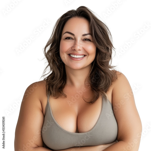 portrait of smiling beautiful caucasian plump woman 35 years old, isolate on transparent background