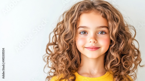 Portrait of smiling girl with long curly hair showing happiness and joy
