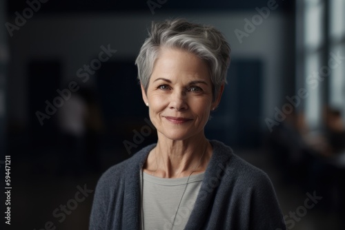 Portrait of smiling senior businesswoman with grey hair looking at camera