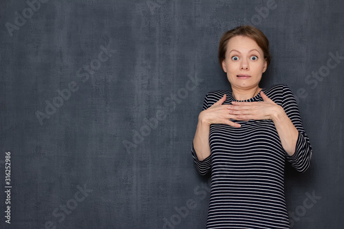 Portrait of stunned girl seeing something disgusting or terrible