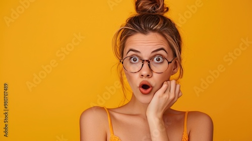 Portrait of Surprised Woman, on a solid color background.
