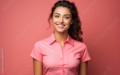portrait of waitress, happy and smiling, in color clothing