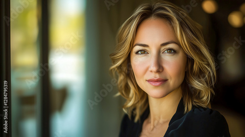 Portrait of woman. Confident, poised, and well-lit. The background is blurred, drawing the focus to the woman's features.
