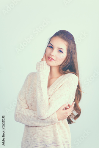 Portrait of woman with arms crossed, isolated on white background