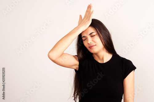 Portrait of young beautiful cute cheerful girl smiling looking at camera over white background