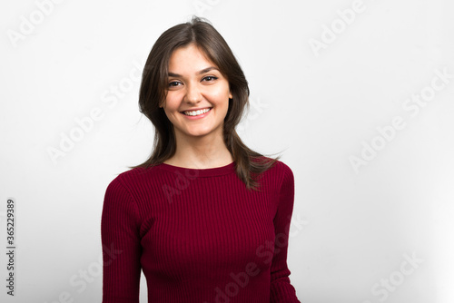 Portrait of young beautiful woman with brown hair