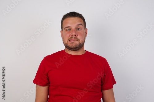 Portrait of young businessman making grimace and crazy face, screaming out of control, funny lunatic expressing freedom and wild.