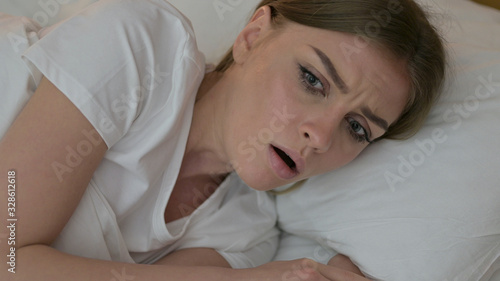 Portrait of Young Woman having Nightmare in Bed