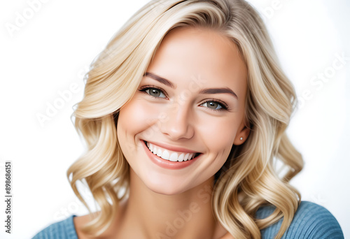 portrait smiling blond woman isolated white background high resolution high details vibrant