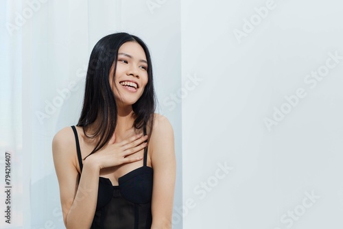 Portrait woman glamour femininity asian fashion white cosmetic beautiful model hair beauty salon