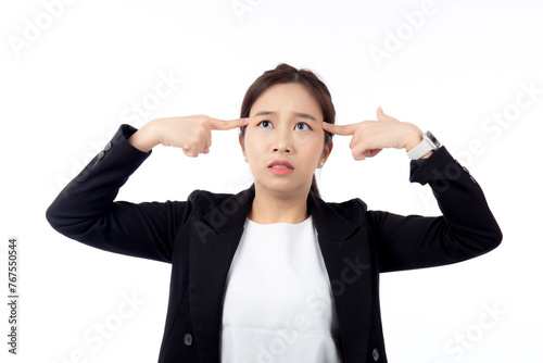 Portrait young asian businesswoman unhappy and angry isolated white background, expression and emotion, business woman annoyed and worried, aggressive and anxiety, female stress and depressed.