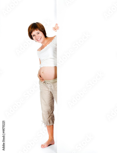 pregnant woman with a white board