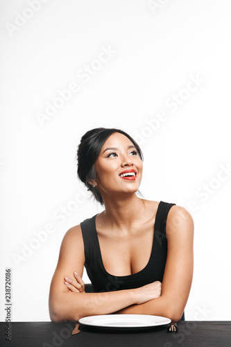 Pretty asian woman sitting at the table