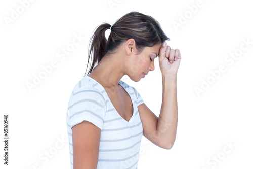 Pretty brunette with fist on forehead