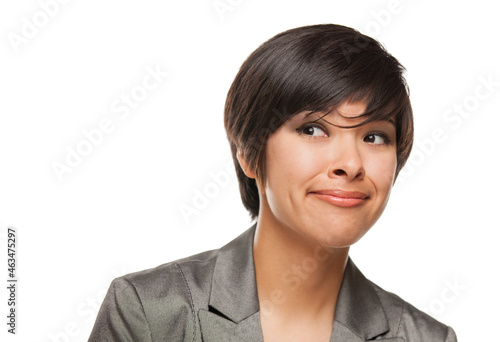 Pretty Mixed Race Girl Looking To The Side Isolated Against White Background.