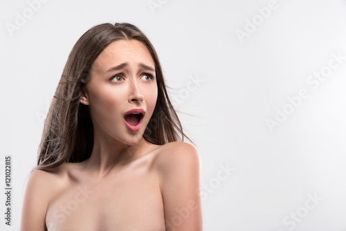 Pretty woman is very afraid of something