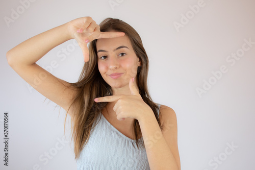 Pretty young girl making the portrait gesture