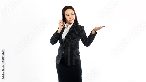Professional Business Asian, Business Woman using smartphone, online calling, voice command, business concept.