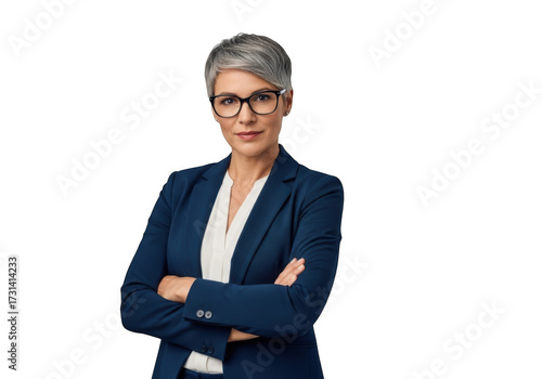 Professional businesswoman with glasses in blue suit portrait stock photo, headshot, isolated image, png, cutout, transparent background isolated on transparent background
