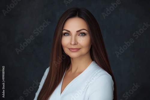 Professional Headshot of a Slavic Woman in a Neutral Background for Business and Corporate Use - High-Resolution Image Showcasing Her Elegant Style, Confident Expression, and Natural Beauty