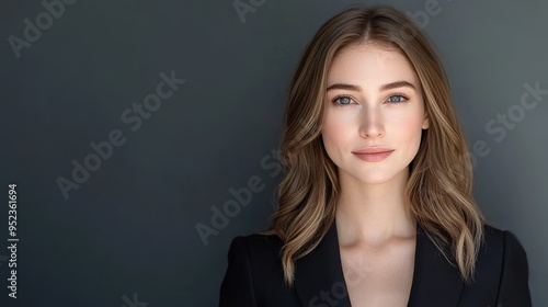 Professional headshot of a woman in a business suit with a soft focus and clean backdrop