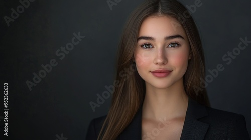 Professional headshot of a woman in a business suit with a soft focus and clean backdrop