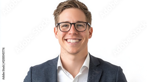 Professional Individual Smiling in Business Suit with Glasses Against a Simple Background for Corporate Use