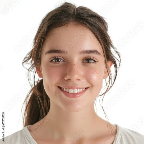Professional photograph of a young woman with flawless skin, looking refreshed and natural, isolated on white background,, asia,china