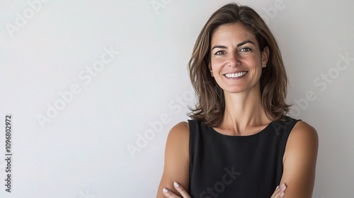 Professional Portrait of a Confident and Smiling Businesswoman Leading a Startup, Showcasing Strong Leadership Qualities and Approachability in a Modern Workspace Setting