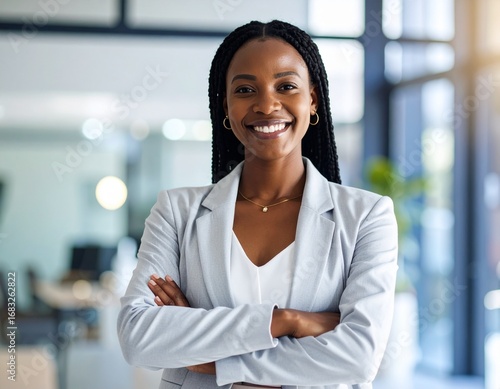 Professional Portrait of Confident Black Businesswoman in Modern Office