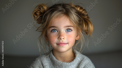 Professional studio photo portrait of a cute little girl, lovely kid with naive face, adorable baby, a child with a emotional expression, widescreen 16:9