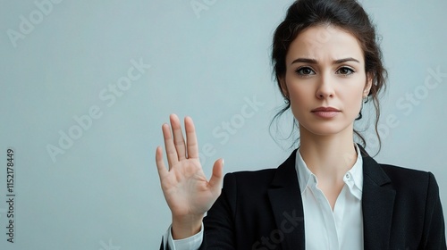 Professional Woman Gesturing No to Sexual Harassment Concerns