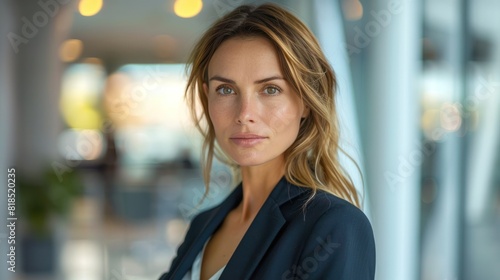 Professional woman in suit standing in modern office Mature business woman looking at camera in office meeting area