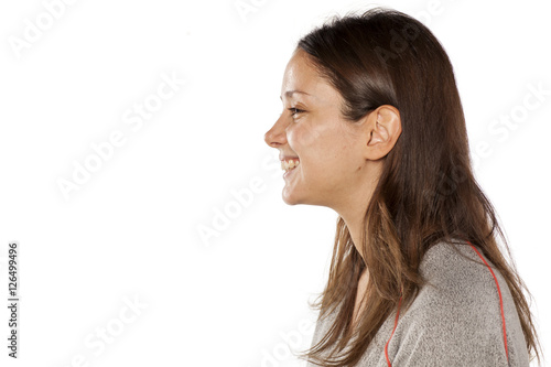 profile of young beautiful woman with long hair and without makeup