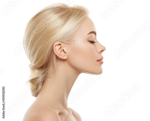 Profile of young caucasian female with blonde hair and elegant updo, cut out