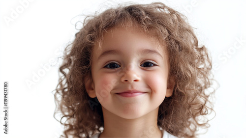 Proud Accomplishment. A child with a broad, confident smile and eyes shining with pride and glowing face exude a sense of achievement and self-confidence on white studio background
