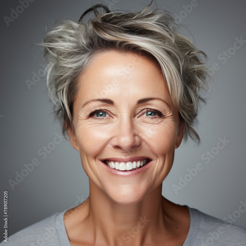 Radiant Confidence: Captivating Portrait of a Smiling Woman. Embrace Her Strength and Positivity on a Clean, Isolated Background. Power of a Confident Smile.