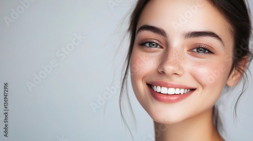 Radiant Model with Perfect Smile and Beautiful Face Isolated Portrait