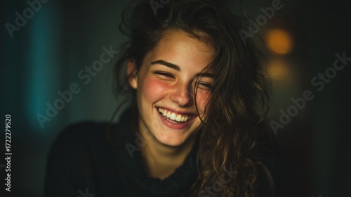 Radiant smile: A young woman expressing pure happiness with closed eyes