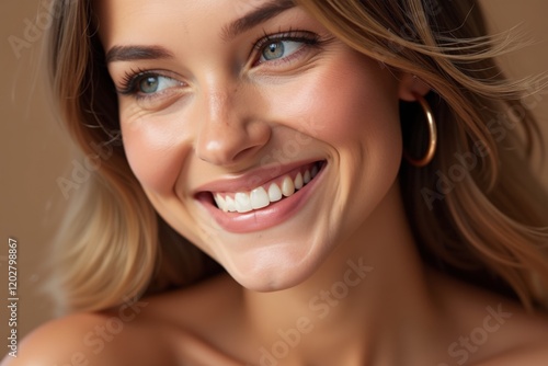 Radiant Smiling Woman Portrait with Natural Beauty and Gleaming Teeth Showcasing Happiness and Confidence – Perfect for Lifestyle and Beauty Themes
