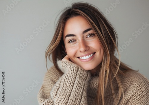 Radiant Young Woman Smiling in Casual Autumn Attire